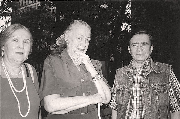 На Международной конференции, посвященной 110-летию со дня рождения В. В. Маяковского: дочь Маяковского Патриция Томпсон, Г. Г. Копылова и В. И. Корольков (ИМЛИ, 9 июля 2003 г.)